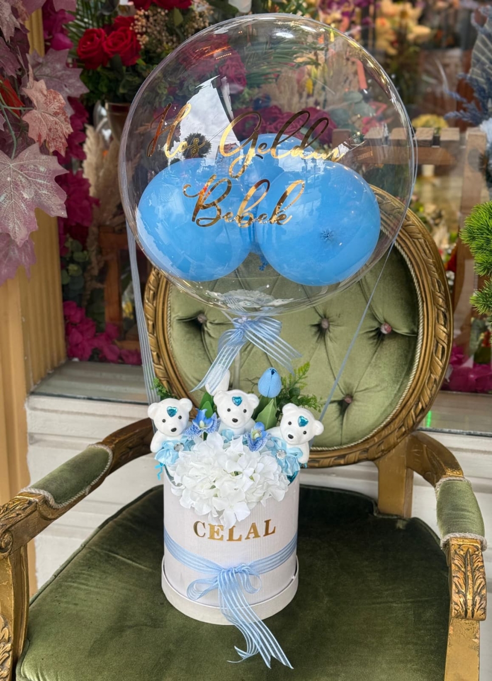 ERKEK BEBEK ÖZEL TASARIM Tasarım 'da kullanılan çiçek ve aksesuarlar stok durumuna göre farklılık gösterilebilir.